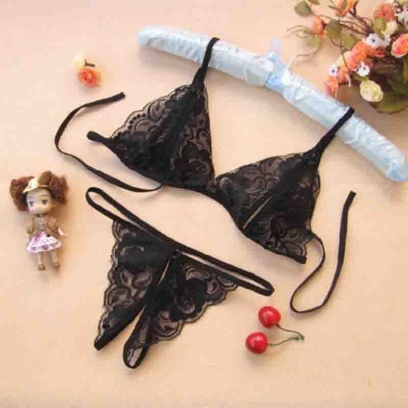 (情趣内衣)羞羞宝贝性感蕾丝透视内衣裤(黑色)